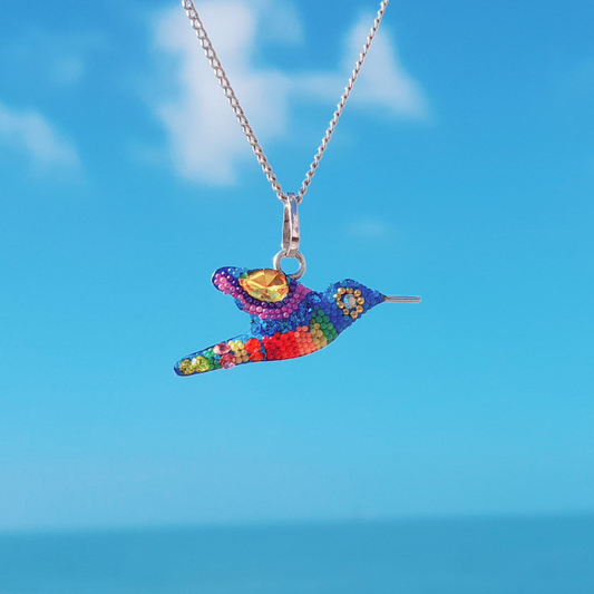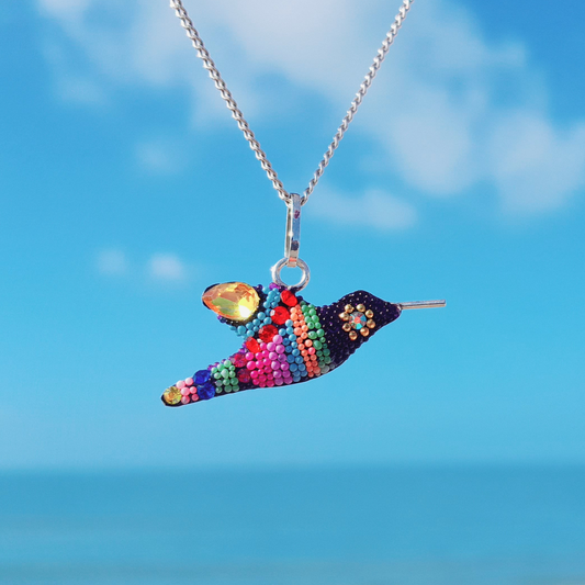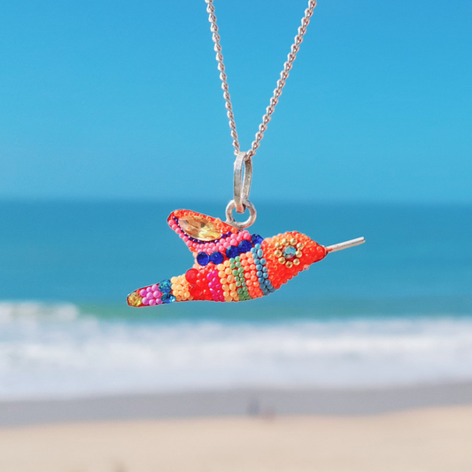 Sumérgete en el encanto de la artesanía mexicana con el colibrí como símbolo de buena suerte.